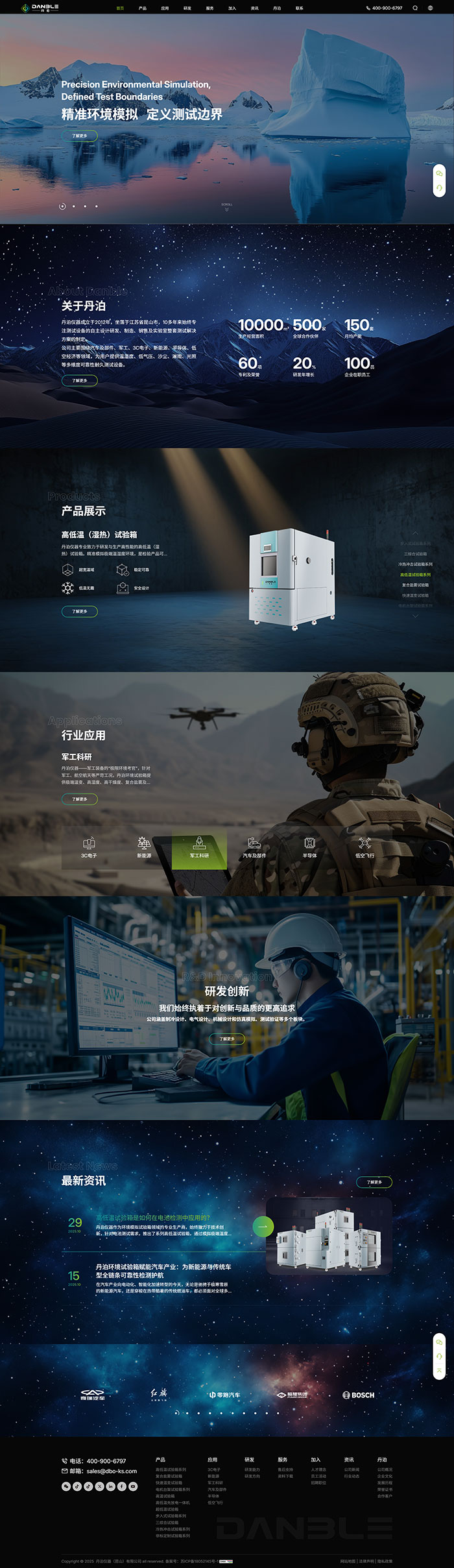 丹泊儀器成立于2012年,坐落于江蘇省昆山市,10多年來始終專注測試設備的自主設計研發、制造、銷售及實驗室整套測試解決方案的制定。公司主要圍繞汽車及部件、軍工、3C電子、新能源、半導體、低空經濟等領域,為用戶提供溫濕度、低氣壓、沙塵、淋雨、光照等多維度可靠性耐久測試設備。公司現有員工100余人,研發年增長20%以上,涵蓋制冷設計、電氣設計、機械設計和仿真模擬、測試驗證等多個板塊。我們的生產經營面積超過10000平米,客戶群體500+,月均產能達150臺/套,各項專利和著作權累計60余項。