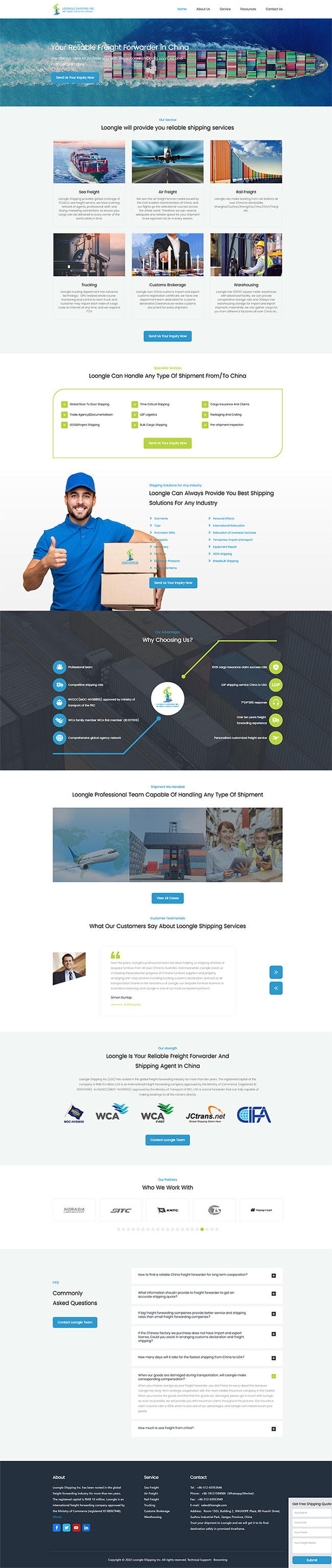 Loongle Shipping Inc. has been rooted in the global freight forwarding industry for more than ten years. The registered capital is RMB 10 million. Loongle is an international freight forwarding company approved by the Ministry of Commerce (registered ID 00067948). As NVOCC(MOC-NV08850) approved by the Ministry of Transport of PRC, Loongle is a China freight forwarder capable of booking to shipping lines and airlines directly.Since its inception, Loongle has spared no effort to build and enhance its overseas agency network. Loongle is a WCA FIRST member (ID 107009) and JCTRANS gold medal member.